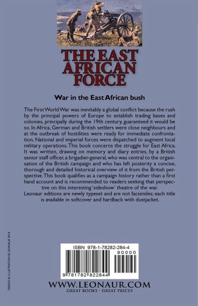 War in the East African bush The First World War was inevitably a global conflict because the rush by the principal powers of Europe to establish trading bases and colonies, principally during the 19th century, guaranteed it would be so. In Africa, German and British settlers were close neighbours and at the outbreak of hostilities were ready for immediate confrontation. National and imperial forces were dispatched to augment local military operations. This book concerns the struggle for East Africa. It was written, drawing on memory and diary entries, by a British senior staff officer, a brigadier-general, who was central to the organisation of the British campaign and who has left posterity a concise, thorough and detailed historical overview of it from the British perspective. This book qualifies as a campaign history rather than a first hand account and is recommended to readers seeking that perspective on this interesting 'sideshow' theatre of the war. Leonaur editions are newly typeset and are not facsimiles; each title is available in softcover and hardback with dustjacket.