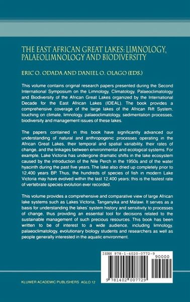 Geological and Structural Setting of the East African Lakes.- A 300 Million Years History of Rift Lakes in Central and East Africa: An Updated Broad Review.- Climate Dynamics and Climate Variability in the East African Lakes Region.- Extreme Rainfall Events and Lake Level Changes in East Africa: Recent Events and Historical Precedents.- Mesoscale Patterns of Rainfall, Cloudiness and Evaporation over the Great Lakes of East Africa.- Observations, Evaporation and Preliminary Modelling of Over-Lake Meteorology on Large African Lakes.- Development of a Coupled Regional Climate Simulation Model for the Lake Victoria Basin.- Hydrology and Physical Limnology.- A Modelling Approach for Lake Malawi/Nyasa/Niassa: Integrating Hydrological and Limnological Data.- Ventilation of Lake Malawi / Nyasa.- Application of Satellite AVHRR to Water Balance, Mixing Dynamics, and the Chemistry of Lake Edward, East Africa.- Lake - Groundwater Relationships, Oxygen Isotope Balance and Climate Sensitivity of the Bishoftu Crater Lakes, Ethiopia.- A Review of Sediment Gas Cycling in Lakes with Reference to Lake Victoria and Sediment Gas Measurements in Lake Tanganyika.- Biodiversity, Food Webs and Fisheries.- Redundancy and Ecosystem Stability in the Fluctuating Environments of Long-Lived Lakes.- Invasion of Lake Victoria by the Large Bodied Herbivorous Cladoceran Daphnia Magna.- Effects of Climate and Human Activities on the Ecosystem of Lake Baringo, Kenya.- Limnological Profiles and Their Variability in Lake Tanganyika.- Sedimentary Processes, Paleoclimate and Paleoenvironment.- Sedimentology and Geochronology of Late Pleistocene and Holocene Sediments from Northern Lake Malawi.- A 24,000 yr Diatom Record from the Northern Basin of Lake Malawi.- Lake Tanganyika Holocene Record on Variabilityin Precipitation in the Malagarasi Catchment Basin.- Late Quaternary Sedimentation and Climate in the Lakes Edward and George Area, Uganda - Congo.- Pigment Analysis of Short Cores from the Central Ethiopian Rift Valley Lakes.- Origin and Isotopic Composition of Aragonite Laminae in an Ethiopian Crater Lake.- Vegetation Changes and Their Climatic Implications for the Lake Victoria Region during the Late Holocene.- Organic Content and X-ray Density of Lacustrine Sediments from Hausberg Tarn, Mount Kenya.- Human Dimensions: Impacts and Management.- Restoring and Protecting the African Great Lake Basin Ecosystems-Lessons from the North American Great Lakes and the GEF.- Geological Hazards and Anthropogenic Impacts on the Environment in Malawi: Lesson from a Case Study of Debris Flows in Zomba.- The Human Dimensions Studies on the East African Lake Regions: A Review.