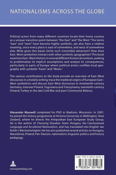 Contents: Alexander Maxwell: Introduction. Bridges and Bulwarks: A Historiographic Overview of East-West Discourses - Glyn Parry: Conceptions of the East: Medieval and Early Modern Europe - Florian Gassner: Becoming a Western Nation: German National Identity and the Image of Russia - Andrew Kier Wise: Russia as Poland's Civilizational "Other" - Vesna Drapac: Yugoslav Studies and the East-West Dichotomy - Sacha Davis: East-West Discourses in Transylvania: Transitional Erdély , German-Western Siebenbürgen or Latin-Western Ardeal ? - Christopher Browning/Marko Lehti: Geographic Centrality and Marginality: East, West and North in Finnish Symbolic Geography - Mehmet Dosemeci: How Turkey Became a Bridge between "East" and "West": The EEC and Turkey's Great Westernization Debate, 1960-1980 - Nelly Bekus: East, West or "In Between"? Three Post-Communist Concepts of the Belarusian Nation.