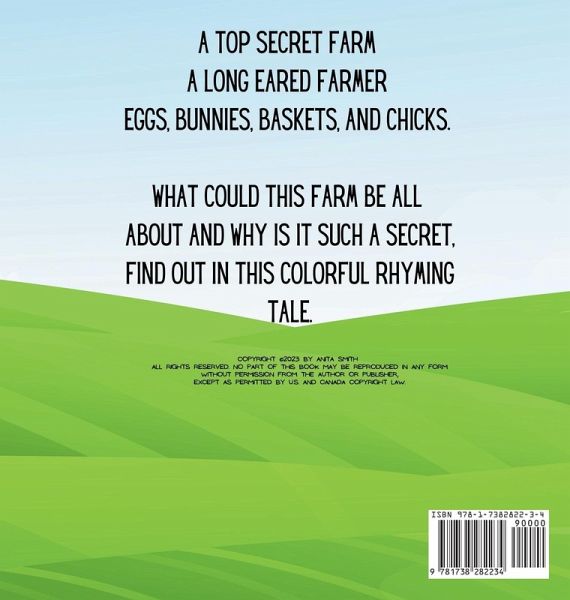 A top secret farm, a long eared farmer, eggs, bunnies, baskets, and chicks. What could this farm be all about and why is it such a secret. Find out in this colorful rhyming tale. A perfect Easter bedtime story!