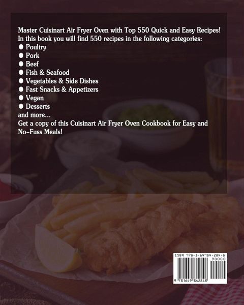 Master Cuisinart Air Fryer Oven with Top 550 Quick and Easy Recipes! In this book you will find 550 recipes in the following categories: ¿ Poultry ¿ Pork ¿ Beef ¿ Fish & Seafood ¿ Vegetables & Side Dishes ¿ Fast Snacks & Appetizers ¿ Vegan ¿ Desserts and more... Get a copy of this Cuisinart Air Fryer Oven Cookbook for Easy and No-Fuss Meals!