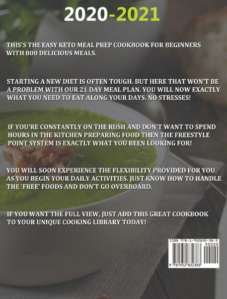 2020-2021 This's The Easy Keto Meal Prep Cookbook For Beginners with 800 Delicious meals. Starting a new diet is often tough. But here that won't be a problem with our 21 day meal plan. You will now exactly what you need to eat along your days. No stresses! If you're constantly on the rush and don't want to spend hours in the kitchen preparing food then the Freestyle point system is exactly what you been looking for! You will soon experience the flexibility provided for you as you begin your daily activities. Just know how to handle the 'free' foods and don't go overboard. If you want the full view, just add this great cookbook to your unique cooking library today!