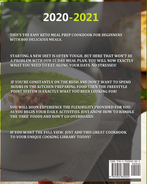 2020-2021 This's The Easy Keto Meal Prep Cookbook For Beginners with 800 Delicious meals. Starting a new diet is often tough. But here that won't be a problem with our 21 day meal plan. You will now exactly what you need to eat along your days. No stresses! If you're constantly on the rush and don't want to spend hours in the kitchen preparing food then the Freestyle point system is exactly what you been looking for! You will soon experience the flexibility provided for you as you begin your daily activities. Just know how to handle the 'free' foods and don't go overboard. If you want the full view, just add this great cookbook to your unique cooking library today!