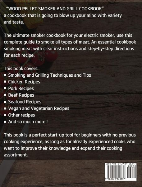 "WOOD PELLET SMOKER AND GRILL COOKBOOK" - a cookbook that is going to blow up your mind with variety and taste. The ultimate smoker cookbook for your electric smoker, use this complete guide to smoke all types of meat. An essential cookbook smoking meat with clear instructions and step-by-step directions for each recipe. This book covers:¿Smoking and Grilling Techniques and Tips ¿Chicken Recipes ¿Pork Recipes ¿Beef Recipes ¿Seafood Recipes ¿Vegan and Vegetarian Recipes ¿Other recipes ¿And so much more!! This book is a perfect start-up tool for beginners with no previous cooking experience, as long as for already experienced cooks who want to improve their knowledge and expand their cooking assortment.