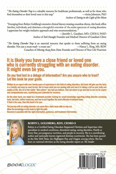 Written by an expert with over twenty years of experience in the field of eating disorders, this book will give you the facts in a friendly and easy to read format. Get to know what you are dealing with and how it is taking a toll on your body and quality of life. Get rid of the myths "diet culture" has had you believe. Find out where to go and who to turn to for expert and compassionate care, maximizing your potential for recovery. On the other hand, you might be a treatment provider looking for sound knowledge regarding eating disorder screening tools, lab tests, online resources, and how to put together the most effective treatment team. If that is the case, then this book is for you. The journey with an eating disorder can seem like a dark maze with no way out. Allow the knowledge in this book to light the path. Recovery is possible with the right information, guidance, and treatment intervention.
