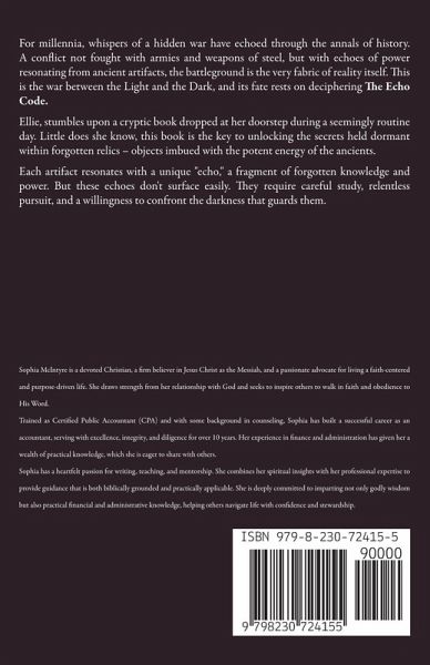 For millennia, whispers of a hidden war have echoed through the annals of history. A conflict not fought with armies and weapons of steel, but with echoes of power resonating from ancient artifacts, the battleground is the very fabric of reality itself. This is the war between the Light and the Dark, and its fate rests on deciphering The Echo Code. Ellie, stumbles upon a cryptic book dropped at her doorstep during a seemingly routine day. Little does she know, this book is the key to unlocking the secrets held dormant within forgotten relics - objects imbued with the potent energy of the…mehr