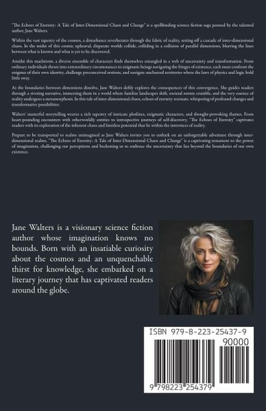 "The Echoes of Eternity: A Tale of Inter-Dimensional Chaos and Change" is a spellbinding science fiction saga penned by the talented author, Jane Walters. Within the vast tapestry of the cosmos, a disturbance reverberates through the fabric of reality, setting off a cascade of inter-dimensional chaos. In the midst of this cosmic upheaval, disparate worlds collide, colliding in a collision of parallel dimensions, blurring the lines between what is known and what is yet to be discovered. Amidst this maelstrom, a diverse ensemble of characters finds themselves entangled in a web of uncertainty and transformation. From ordinary individuals thrust into extraordinary circumstances to enigmatic beings navigating the fringes of existence, each must confront the enigmas of their own identity, challenge preconceived notions, and navigate uncharted territories where the laws of physics and logic hold little sway. As the boundaries between dimensions dissolve, Jane Walters deftly explores the consequences of this convergence. She guides readers through a riveting narrative, immersing them in a world where familiar landscapes shift, societal norms crumble, and the very essence of reality undergoes a metamorphosis. In this tale of inter-dimensional chaos, echoes of eternity resonate, whispering of profound changes and transformative possibilities. Walters' masterful storytelling weaves a rich tapestry of intricate plotlines, enigmatic characters, and thought-provoking themes. From heart-pounding encounters with otherworldly entities to introspective journeys of self-discovery, "The Echoes of Eternity" captivates readers with its exploration of the inherent chaos and limitless potential that lie within the interstices of reality. Prepare to be transported to realms unimagined as Jane Walters invites you to embark on an unforgettable adventure through inter-dimensional realms. "The Echoes of Eternity: A Tale of Inter-Dimensional Chaos and Change" is a captivating testament to the power of imagination, challenging our perceptions and beckoning us to embrace the uncertainty that lies beyond the boundaries of our own existence.