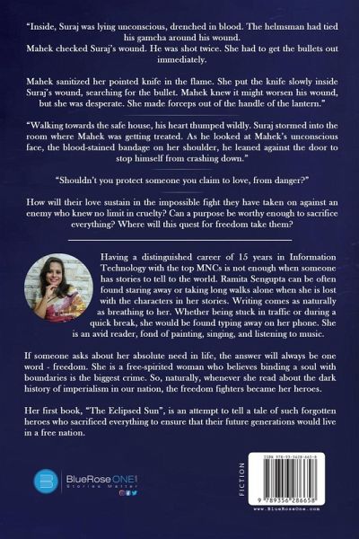 Having a distinguished career of 15 years in Information Technology with the top MNCs is not enough when someone has stories to tell to the world. Writing comes as naturally as breathing to Ramita Sengupta. She is a free-spirited woman who believes binding a soul with boundaries is the biggest crime. So, naturally, whenever she read about the dark history of imperialism in India, the freedom fighters became her heroes. "The Eclipsed Sun" is an attempt to imagine their world and to tell a humane story of passionate love, family-ties, friendship amidst the revolution. A story of passionate love, family-ties and friendship amidst a revolution.... Born in a nation immersed in the darkness of colonialism, Suraj's struggle with the injustice around him starts early in life. As the nation awakens, a revolution is built in secrecy by a group of men and women of sheer intellect and courage and, most of all, an undying sense of duty towards their motherland. In this turbulent times, Suraj's life gets riddled with conflicts, failures and tragedies. But there is no dearth of love, dreams, passion, adventures and triumphs in his life, either. "The Eclipsed Sun" is a humane story of the extraordinary courage of common people who built up a revolution that was severe enough to shake the foundation of the biggest colonial power in the world. It is a story of love in every form, against all odds.