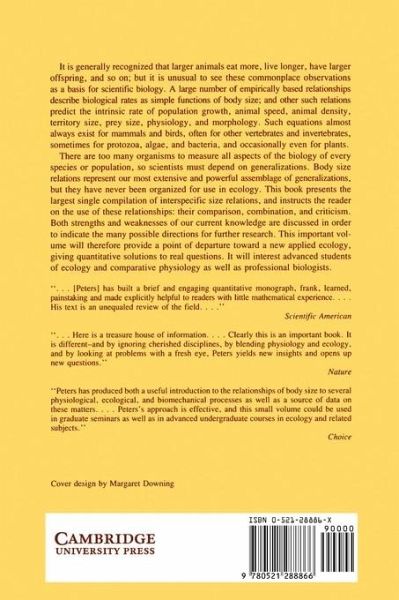 Larger animals eat more, live longer, have larger offspring, but these commonplace observations are rarely seen as a basis for scientific biology. Empirically-based relationships describe body functions as simple functions of body size but these relations have never been organised for use in ecology. This book presents the largest single compilation of interspecific size relations.