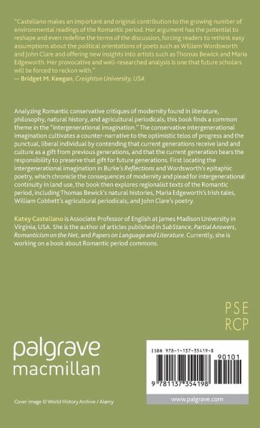 "Castellano makes an important and original contribution to the growing number of environmental readings of the Romantic period. Her argument has the potential to reshape and even redefine the terms of the discussion, forcing readers to rethink easy assumptions about the political orientations of poets such as William Wordsworth and John Clare and offering new insights into artists such as Thomas Bewick and Maria Edgeworth. Her provocative and well-researched analysis is one that future scholars will be forced to reckon with." - Bridget M. Keegan, Creighton University, USA