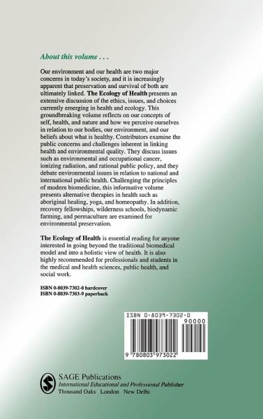 The contributors to this innovative and wide-ranging volume reflect on the philosophical issues surrounding health and ecology. They examine the policy issues involved in health and health ecology, and explore the paths that may eventually lead to a new ecology of health.