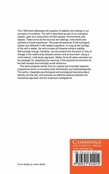 This 1991 book addresses the question of stability and change in our concepts of ourselves. The self is described as part of an ecological system, seen as a conjunction of other people, environments and objects. These serve as the sources and settings, instruments and symbols of social experience. The external elements of the ecological system are reflected in self-related cognitions: so long as the ecology of the self is stable, the self-concept will likewise achieve stability. Self-concept change, therefore, can be studied from the point of view of change in the relationship between person and environment. Using a multi-method, multi-study approach, Stefan Hormuth takes relocation as his paradigm for assessing the meaning of the physical environment for the self-concept and everyday social behaviour. This book presents results from an original and important research programme which is innovative both theoretically and methodologically.