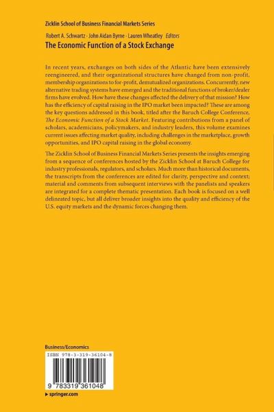In recent years, exchanges on both sides of the Atlantic have been extensively reengineered, and their organizational structures have changed from non-profit, membership organizations to for-profit, demutualized organizations. Concurrently, new alternative trading systems have emerged and the traditional functions of broker/dealer firms have evolved. How have these changes affected the delivery of that mission? How has the efficiency of capital raising in the IPO market been impacted? These are among the key questions addressed in this book, titled after the Baruch College Conference, The Economic Function of a Stock Market. Featuring contributions from a panel of scholars, academicians, policymakers, and industry leaders, this volume examines current issues affecting market quality, including challenges in the marketplace, growth opportunities, and IPO capital raising in the global economy.