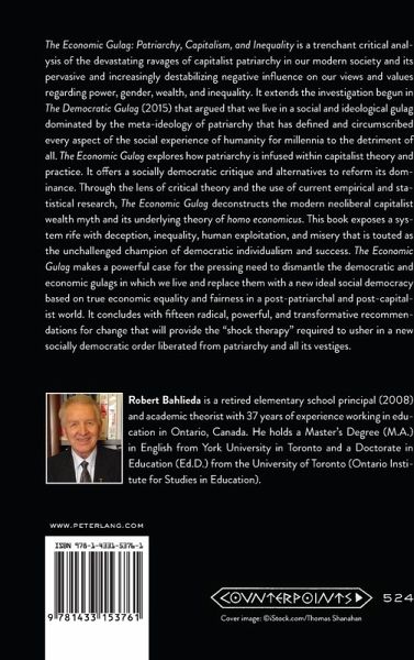 The Economic Gulag: Patriarchy, Capitalism, and Inequality is a trenchant critical analysis of the devastating ravages of capitalist patriarchy in our modern society and its pervasive and increasingly destabilizing negative influence on our views and values regarding power, gender, wealth, and inequality. It extends the investigation begun in The Democratic Gulag (2015) that argued that we live in a social and ideological gulag dominated by the meta-ideology of patriarchy that has defined and circumscribed every aspect of the social experience of humanity for millennia to the detriment of all. The Economic Gulag explores how patriarchy is infused within capitalist theory and practice. It offers a socially democratic critique and alternatives to reform its dominance. Through the lens of critical theory and the use of current empirical and statistical research, The Economic Gulag deconstructs the modern neoliberal capitalist wealth myth and its underlying theory of homoeconomicus. This book exposes a system rife with deception, inequality, human exploitation, and misery that is touted as the unchallenged champion of democratic individualism and success. The Economic Gulag makes a powerful case for the pressing need to dismantle the democratic and economic gulags in which we live and replace them with a new ideal social democracy based on true economic equality and fairness in a post-patriarchal and post-capitalist world. It concludes with fifteen radical, powerful, and transformative recommendations for change that will provide the "shock therapy" required to usher in a new socially democratic order liberated from patriarchy and all its vestiges.