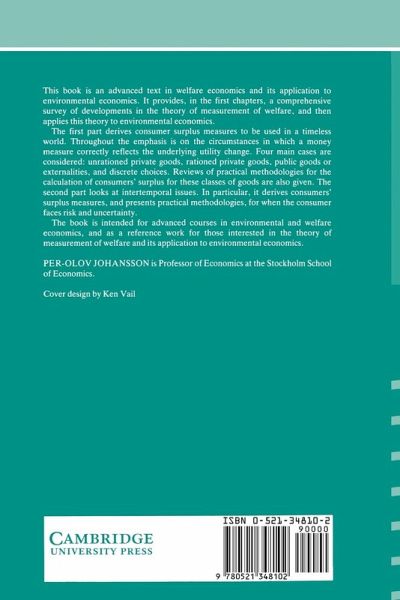 This book is an advanced text in welfare economics and its application to environmental economics. It provides, in the first chapters, a comprehensive survey of developments in the theory of measurement of welfare, and then applies this theory to environmental economics. The first part derives consumer surplus measures to be held in a timeless world. Throughout the emphasis is on the circumstances in which a money measure correctly reflects the underlying utility change. Four main cases are considered: unrationed private goods, rationed private goods, public goods or externalities, and discrete choices. Reviews of practical methodologies for the calculation of consumers' surplus for these classes of goods are also given. The second part looks at intertemporal issues. In particular, it derives comsumer faces risk and uncertainty. The book is intended for advanced courses in environmental and welfare economics, and as a reference work for those interested in the theory of measurement of welfare and its application to environmental economics.