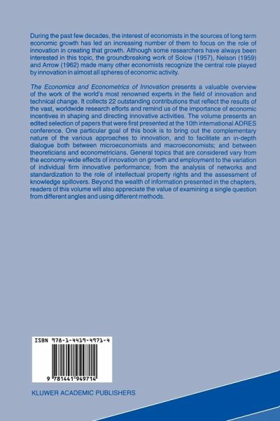 The Economics and Econometrics of Innovation presents a valuable overview of the work of the world's most renowned experts in the field of innovation and technical change. It collects 22 outstanding contributions that reflect the results of the vast, worldwide research efforts and remind us of the importance of economic incentives in shaping and directing innovative activities. The volume presents an edited selection of papers that were first presented at the 10th International ADRES conference. One particular goal of this book is to bring out the complementary nature of the various approaches to innovation, and to facilitate in-depth dialogues both between microeconomists and macroeconomists, and between theoreticians and econometricians. General topics that are considered range from the economy-wide effects of innovation on growth and employment to the variation of individual firm innovative performance; from the analysis of networks and standardization to the role of intellectual property rights and the assessment of knowledge spillovers. Besides the wealth of information presented in the chapters, readers of this volume will also appreciate the value of examining a single question from different angles and by using different methods.