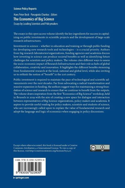 Public investment is required to maintain the pace of technological and scientific advancements over the next decades. Far from advocating a radical transformation and massive expansion in funding, the authors suggest ways for maintaining a strong foundation of science and research to ensure that we continue to benefit from the outputs. The volume draws inspiration from the first "Economics of Big Science" workshop, held in Brussels in 2019 with the aim of creating a new space for dialogue and interaction between representatives of Big Science organizations, policy makers and academia. It aspires to provide useful reading for policy makers, scientists and students of science, who are increasingly called upon to explain the value of fundamental research and adopt the language and logic of economics when engaging in policy discussions.