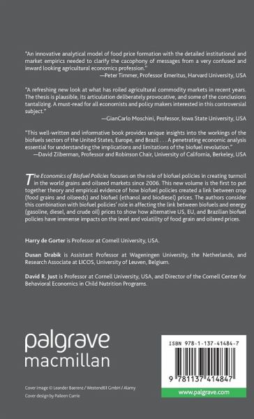 Harry de Gorter is Professor in the Charles H. Dyson School of Applied Economics and Management, Cornell University, USA. His research focus is on agricultural trade policy and much of his recent work has been on biofuels and agricultural trade reform and the Doha Development Agenda, especially the impact of subsidies and protection on developing countries. Dusan Drabik is Assistant Professor of Agricultural Economics at Wageningen University, the Netherlands, and Research Associate at LICOS Centre for Institutions and Economic Performance, University of Leuven, Belgium. In his recent work, Drabik has analyzed the market and environmental effects of alternative biofuel policies in the United States, the European Union and developing countries. David R. Just is Professor in the Charles H. Dyson School of Applied Economics and Management, Cornell University, USA, and Director of the Cornell Center for Behavioral Economics in Child Nutrition Programs. Just uses the tools of psychology and economics to examine how individuals approach various choices. His research has been published in scores of research articles, winning wide recognition both among academics and within the popular press.