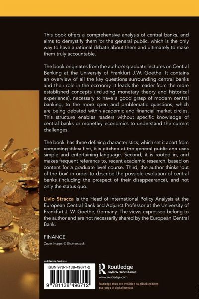 This book offers a comprehensive analysis of central banks, and aims to demystify them for the general public, which is the only way to have a rational debate about them and ultimately to make them truly accountable. The book originates from the author's graduate lectures on Central Banking at the University of Frankfurt J.W. Goethe. It contains an overview of all the key questions surrounding central banks and their role in the economy. It leads the reader from the more established concepts (including monetary theory and historical experience), necessary to have a good grasp of modern central banking, to the more open and problematic questions, which are being debated within academic and financial market circles. This structure enables readers without specific knowledge of central banks or monetary economics to understand the current challenges. The book has three defining characteristics, which set it apart from competing titles: first, it is pitched at the general public and uses simple and entertaining language. Second, it is rooted in, and makes frequent reference to, recent academic research, based on content for a graduate level course. Third, the author thinks 'out of the box' in order to describe the possible evolution of central banks (including the prospect of their disappearance), and not only the status quo.¿
