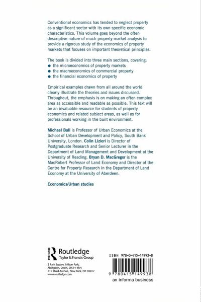 This new text provides a rigorous analysis of real estate markets. Three main sections cover: microeconomics of property markets | the macroeconomics of commercial property | the financial economics of property Global empirical examples illustrate the theories and issues. This often complex area is made accessible: each chapter contains a boxed summary and questions for self-testing or discussion.