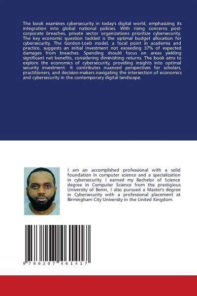 The book examines cybersecurity in today's digital world, emphasizing its integration into global national policies. With rising concerns post-corporate breaches, private sector organizations prioritize cybersecurity. The key economic question tackled is the optimal budget allocation for cybersecurity. The Gordon-Loeb model, a focal point in academia and practice, suggests an initial investment not exceeding 37% of expected damages from breaches. Spending should focus on areas yielding significant net benefits, considering diminishing returns. The book aims to explore the economics of cybersecurity, providing insights into optimal security investment. It contributes nuanced perspectives for scholars, practitioners, and decision-makers navigating the intersection of economics and cybersecurity in the contemporary digital landscape.