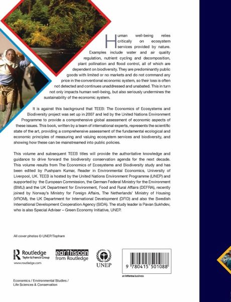 This volume is an output of TEEB: The Economics of Ecosystems and Biodiversity study and has been edited by Pushpam Kumar, Reader in Environmental Economics, University of Liverpool, UK. TEEB is hosted by the United Nations Environment Programme (UNEP) and supported by the European Commission, the German Federal Ministry for the Environment (BMU) and the UK Department for Environment, Food and Rural Affairs (DEFRA), recently joined by Norway's Ministry for Foreign Affairs, The Netherlands' Ministry of Housing (VROM), the UK Department for International Development (DFID) and also the Swedish International Development Cooperation Agency (SIDA). The study leader is Pavan Sukhdev, who is also Special Adviser - Green Economy Initiative, UNEP.