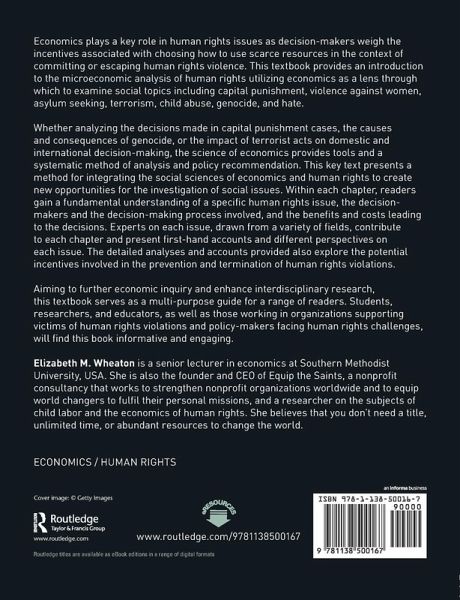 Economics plays a key role in human rights issues as decision-makers weigh the incentives associated with choosing how to use scarce resources in the context of committing or escaping human rights violence. This textbook provides an introduction to the microeconomic analysis of human rights utilizing economics as a lens through which to examine social topics including capital punishment, violence against women, asylum seeking, terrorism, child abuse, genocide, and hate. Whether analyzing the decisions made in capital punishment cases, the causes and consequences of genocide, or the impact of terrorist acts on domestic and international decision-making, the science of economics provides tools and a systematic method of analysis and policy recommendation. This key text presents a method for integrating the social sciences of economics and human rights to create new opportunities for the investigation of social issues. Within each chapter, readers gain a fundamental understanding of a specific human rights issue, the decision-makers and the decision-making process involved, and the benefits and costs leading to the decisions. Experts on each issue, drawn from a variety of fields, contribute to each chapter and present first-hand accounts and different perspectives on each issue. The detailed analyses and accounts provided also explore the potential incentives involved in the prevention and termination of human rights violations. Aiming to further economic inquiry and enhance interdisciplinary research, this textbook serves as a multi-purpose guide for a range of readers. Students, researchers, and educators, as well as those working in organizations supporting victims of human rights violations and policy-makers facing human rights challenges, will find this book informative and engaging.