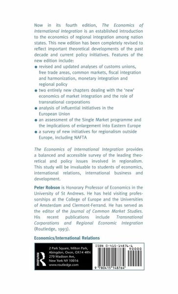 International economic integration can in many ways be seen as one of the everyday consequences of globalization. As communication lines grow shorter, more and more countries are seeing the use in hacking down trade barriers. This new edition of Peter Robson's classic text will doubtless please its many fans