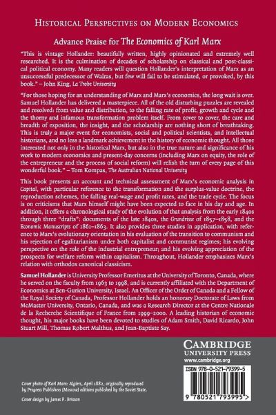 'This is vintage Hollander: beautifully written, highly opinionated and extremely well researched. It is the culmination of decades of scholarship on classical and post-classical political economy. Many readers will question Hollander's interpretation of Marx as an unsuccessful predecessor of Walras, but few will fail to be stimulated, or provoked, by this book.' John King, La Trobe University