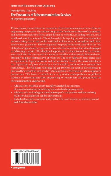 This textbook characterizes the economics of telecommunication services from an engineering perspective. The authors bring out the fundamental drivers of the industry and characterize networks from a graph theoretic perspective, including random, small world, and scale free networks. The authors relate the topology of a telecommunication network using circuit and packet switched architectures to throughput and other performance parameters. The pricing model proposed in this book is based on the cost of displaced opportunity as opposed to the cost of the elements of the network engaged in delivering a service. The displaced opportunity is characterized by the revenue associated with the service that the network could have alternatively delivered most efficiently using an identical level of resources. The book addresses other topics such as regulation in legacy networks, and net neutrality. Finally, the book introduces the application of game theory in a multi-vendor, multi-services competitive marketplace. The book aims to bridge the gap between the science of economics as practiced by economists and practice of pricing from a telecommunication engineer's perspective. This book is suitable for use by senior undergraduate or graduate students of telecommunication engineering or researchers and practitioners in telecommunication engineering.