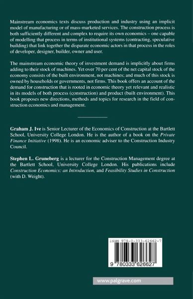GRAHAM IVE is Senior Lecturer in the Economics of Construction at the Bartlett School, University College London. He is the author of a book on the Private Finance Initiative (1998) and an economic adviser to the Construction Industry Council. STEPHEN GRUNEBERG is a Lecturer on the Construction Management degree at the Bartlett School, University College London. His publications include Construction Economics: An Introduction, and Feasibility Studies in Construction (with D.Weight).