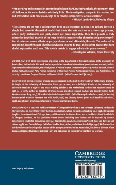 1. Studying economic voting 2. Party choice as a two-stage process 3. Hypotheses and data: the theoretical and empirical setting 4. Effects of the economy on party support 5. The economic voter 6. From individual preferences to election outcomes 7. The economy, party competition, and the vote.