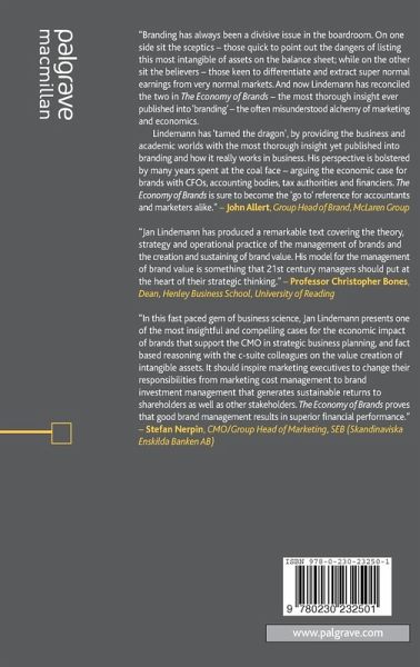 "In this a fast paced gem of business science Jan Lindemann presents one of the most insightful and compelling cases for the economic impact of brands that support the CMO in strategic business planning and fact based reasoning with the c-suite colleagues on the value creation of intangible assets. It should inspire marketing executives to change their responsibilities from marketing cost management to brand investment management that generates sustainable returns to shareholders as well as other stakeholders. The Economy of Brands proves that good brand management results in superior financial performance.'