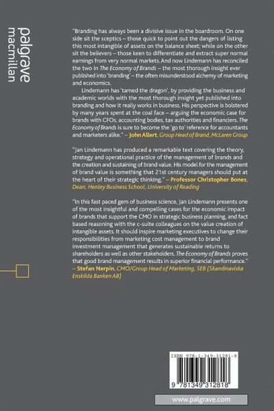 Lindemann has 'tamed the dragon', by providing the business and academic worlds with the most thorough insight yet published, into branding and how it really works in business. His perspective is bolstered by many years spent at the coal face arguing the economic case for brands with CFOs, accounting bodies, tax authorities and financiers. 'The Economy of Brands' is sure to become the 'go to' reference for accountants and marketers alike."
