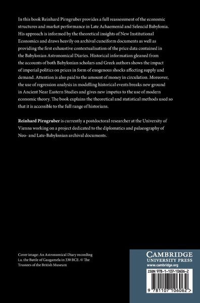 In this book Reinhard Pirngruber provides a full reassessment of the economic structures and market performance in Late Achaemenid and Seleucid Babylonia. His approach is informed by the theoretical insights of New Institutional Economics and draws heavily on archival cuneiform documents as well as providing the first exhaustive contextualisation of the price data contained in the Babylonian Astronomical Diaries. Historical information gleaned from the accounts of both Babylonian scholars and Greek authors shows the impact of imperial politics on prices in form of exogenous shocks affecting supply and demand. Attention is also paid to the amount of money in circulation. Moreover, the use of regression analysis in modelling historical events breaks new ground in Ancient Near Eastern Studies and gives new impetus to the use of modern economic theory. The book explains the theoretical and statistical methods used so that it is accessible to the full range of historians.
