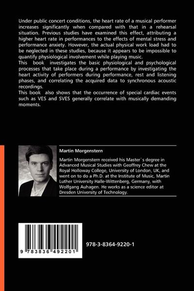Under public concert conditions, the heart rate of a musical performer increases significantly when compared with that in a rehearsal situation. Previous studies have examined this effect, attributing a higher heart rate in performances to the effects of mental stress and performance anxiety. However, the actual physical work load had to be neglected in these studies, because it appears to be impossible to quantify physiological involvement while playing music. The present study investigates the basic physiological and psychological processes that take place during a performance by investigating the heart activity of performers during performance, rest and listening phases, and correlating the acquired data to synchronous acoustic recordings. The study also shows that the occurrence of special cardiac events such as VES and SVES generally correlate with musically demanding moments.