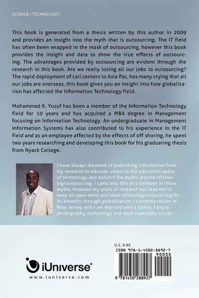 This book is generated from a thesis written by this author in 2009 and provides an insight into the myth that is offshore outsourcing. The Information Technology field has often been criticized for its offshore outsourcing strategy and the negative impact it has on the American Economy. This book however, will provide insight and data gathered over the last twenty years, to show the true effects of offshore outsourcing. The advantages provided by offshore outsourcing are evident through the research in this book. Are we really losing all our jobs to offshore outsourcing? The rapid deployment of call centers to Asia Pac, has many claiming that all our jobs are overseas, this book gives you an insight into how globalization has affected the Information Technology field. The results might surprise you.