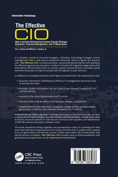 Unlike many books that only provide a general review of the strategies important to the chief information officer, this volume explains how to execute the guidelines it recommends. It surveys existing strategies and includes detailed problem-solving ideas, such as how to structure optimal IT and telecom contracts with suppliers, the implications of SOP-98, and accounting for software costs. The text integrates the perspective of a CIO coping with the daily pressure for results, with that of an IT auditor focused on governance and internal control. Examples, charts, templates, and anecdotes supplement the material.