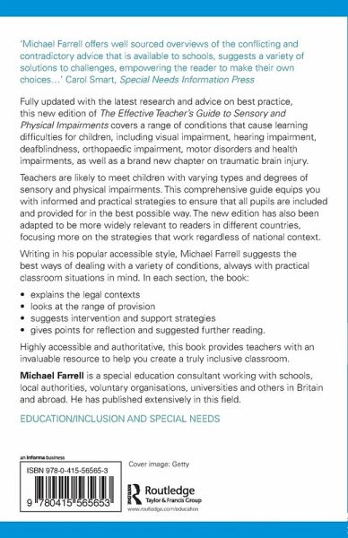 Fully updated with the latest research and advice on best practice, this new edition of The Effective Teacher's Guide to Sensory and Physical Impairments covers a range of conditions that cause learning difficulties for children, including visual impairment, hearing impairment, deafblindness, orthopaedic impairment, motor disorders and health impairments, as well as a brand new chapter on traumatic brain injury.