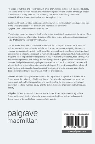 This book uses an economic framework to examine the consequences of U.S. farm and food policies for obesity, its social costs, and the implications for government policy. Drawing on evidence from economics, public health, nutrition, and medicine, the authors evaluate past and potential future roles of policies such as farm subsidies, public agricultural R&D, food assistance programs, taxes on particular foods (such as sodas) or nutrients (such as fat), food labeling laws, and advertising controls. The findings are mostly negative-it is generally not economic to use farm and food policies as obesity policy-but some food policies that combine incentives and information have potential to make a worthwhile impact. This book is accessible to advanced undergraduate and graduate students across the sciences and social sciences, as well as to decision-makers in the public, private, and not-for-profit sectors.