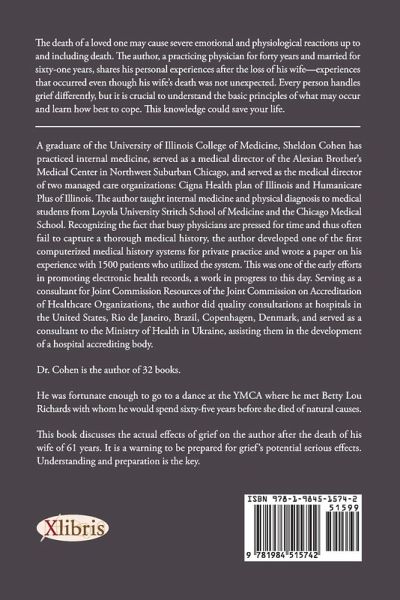 The death of a loved one may cause severe emotional and physiological reactions up to and including death. The author, a practicing physician for forty years and married for sixty-one years, shares his personal experiences after the loss of his wifeexperiences that occurred even though his wifes death was not unexpected. Every person handles grief differently, but it is crucial to understand the basic principles of what may occur and learn how best to cope. This knowledge could save your life.