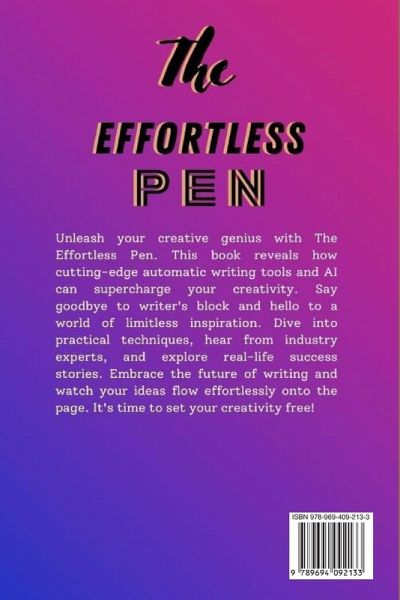 Unleash your inner creativity and unlock profound insights with "The Effortless Pen: Unlocking Creativity with Automatic Writing Tools." This comprehensive guide takes you on a transformative journey through the art of automatic writing, revealing the hidden potential of your subconscious mind. The journey begins with an insightful introduction that sets the stage for your exploration of automatic writing. Learn how this practice can tap into your innate creativity and provide a pathway to self-discovery. Delve into the fundamentals of automatic writing in this book. Gain a deep understanding of what automatic writing is and how it can help you access untapped creative resources within. Discover the essential steps to prepare for your automatic writing sessions. From creating the perfect writing space to setting intentions, you'll learn how to optimize your environment for creative flow. Explore various techniques for effortless writing in this book From stream of consciousness writing to guided exercises, you'll uncover a range of methods to spark your creativity.Bid farewell to writer's block with guidance Identify and address blocks, and learn how to use automatic writing as a powerful tool for breaking through creative barriers. Dive deep into the creative realm. Learn how to connect with your inner creativity, unleash your imagination, and tap into your subconscious mind for endless inspiration.Discover the practical applications of automatic writing in this book. From journaling and creative writing to problem-solving and personal growth, you'll find numerous ways to integrate this practice into your life. Navigate the ethical considerations of automatic writing in to Explore privacy, personal boundaries, and the responsible use of this powerful tool.Level up your automatic writing skills to Learn about advanced techniques such as automatic writing with Tarot or Oracle cards and channeling for spiritual guidance. "The Effortless Pen" is your gateway to unlocking creativity, gaining insight, and fostering personal growth through the art of automatic writing. Whether you're a seasoned writer seeking inspiration or a newcomer to the world of creativity and self-discovery, this book provides the guidance and tools to tap into the limitless potential of your mind.