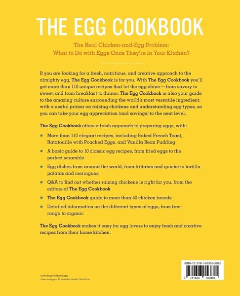 The real chicken-and-egg problem: What to do with eggs once they're in your kitchen? If you are looking for a fresh, nutritious, and creative approach to the almighty egg, The Egg Cookbook is for you. With The Egg Cookbook you'll get more than 110 unique recipes that let the egg shine-from savory to sweet, and from breakfast to dinner. The Egg Cookbook is also your guide to the amazing culture surrounding the world's most versatile ingredient, with a useful primer on raising chickens and understanding egg types, so you can take your egg appreciation (and savings) to the next level. The Egg Cookbook offers a fresh approach to preparing eggs, with: More than 110 elegant recipes, including Baked French Toast, Ratatouille with Poached Eggs, and Vanilla Bean Pudding A basic guide to 10 classic egg recipes, from fried eggs to the perfect scramble Egg dishes from around the world, from frittatas and quiche to tortilla patatas and meringues Q&A to find out whether raising chickens is right for you, from the editors of The Egg Cookbook The Egg Cookbook guide to more than 50 chicken breeds Detailed information on the different types of eggs, from free range to organic The Egg Cookbook makes it easy for egg lovers to enjoy fresh and creative recipes from their home kitchen.