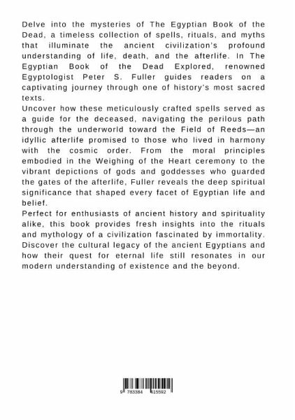 Delve into the mysteries of The Egyptian Book of the Dead, a timeless collection of spells, rituals, and myths that illuminate the ancient civilization's profound understanding of life, death, and the afterlife. In The Egyptian Book of the Dead Explored, renowned Egyptologist Peter S. Fuller guides readers on a captivating journey through one of history's most sacred texts.Uncover how these meticulously crafted spells served as a guide for the deceased, navigating the perilous path through the underworld toward the Field of Reeds-an idyllic afterlife promised to those who lived in harmony with the cosmic order. From the moral principles embodied in the Weighing of the Heart ceremony to the vibrant depictions of gods and goddesses who guarded the gates of the afterlife, Fuller reveals the deep spiritual significance that shaped every facet of Egyptian life and belief.Perfect for enthusiasts of ancient history and spirituality alike, this book provides fresh insights into the rituals and mythology of a civilization fascinated by immortality. Discover the cultural legacy of the ancient Egyptians and how their quest for eternal life still resonates in our modern understanding of existence and the beyond.