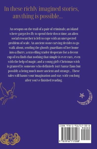 In these richly imagined stories anything is possible... An octopus on the trail of a pair of criminals; an island where gargoyles fly to spend their down time; an alien social researcher is left to cope with an unexpected problem of scale. An ancient stone carving decides to go walk-about, sending the ghostly guardians of her home into a flurry; a travelling trader desperate for a decent cup of tea finds that nothing that simple is ever easy, even with the help of magic; and a young girl's Christmas wish is granted by someone who definitely isn't Santa Claus but possibly a being much more ancient and strange... These tales will haunt your imagination and stay with you long after you've finished reading.
