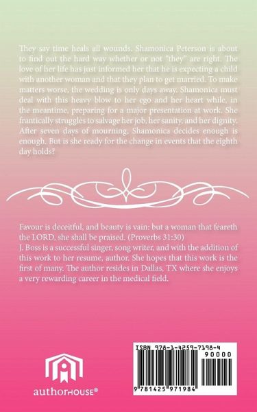 They say time heals all wounds. Shamonica Peterson is about to find out the hard way whether or not "they" are right. The love of her life has just informed her that he is expecting a child with another woman and that they plan to get married. To make matters worse, the wedding is only days away. Shamonica must deal with this heavy blow to her ego and her heart while, in the meantime, preparing for a major presentation at work. She frantically struggles to salvage her job, her sanity, and her dignity. After seven days of mourning, Shamonica decides enough is enough. But is she ready for the change in events that the eighth day holds?