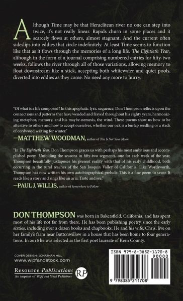 Although Time may be that Heraclitean river no one can step into twice, it's not really linear. Rapids churn in some places and it scarcely flows at others, almost stagnant. And the current often sideslips into eddies that circle indefinitely. At least Time seems to function like that as it flows through the memories of a long life. The Eightieth Year, although in the form of a journal comprising numbered entries for fifty-two weeks, follows the river through all of those variations, allowing memory to float downstream like a stick, accepting both whitewater and quiet pools, diverted into eddies as they come. No need any more to hurry.…mehr
