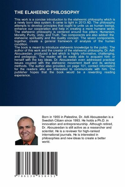 This work is a concise introduction to the elaheenic philosophy which is a newly born idea system. It came to light in 2013 AD. The philosophy attempts to develop principles that ought to unite us as human beings, enhance our cooperation and help in creating a more humane world. The elaheenic philosophy is centered around five pillars: Humanism, Morality, Purity, Unity, and Truth. Two components are also added: the elaheenic spirituality and the duality concept. The seven components, together, create a general framework of analysis of the human condition.The book is meant to introduce elaheenic knowledge to the public. The author of this work and the creator of the elaheenic philosophy, Dr. Adli Abouzeedan, produced a text which is highly informative, challenging, and pedagogic. The reader will be easily able to acquaint him- or herself with the key ideas. Dr. Abouzeedan even addressed practical issues coupled with the elaheenic movement itself and its working methods. The authoralso provided, on page 101, contact information for the readers who are interested to communicate with him. The publisher hopes that the book would be a rewarding reading experience.