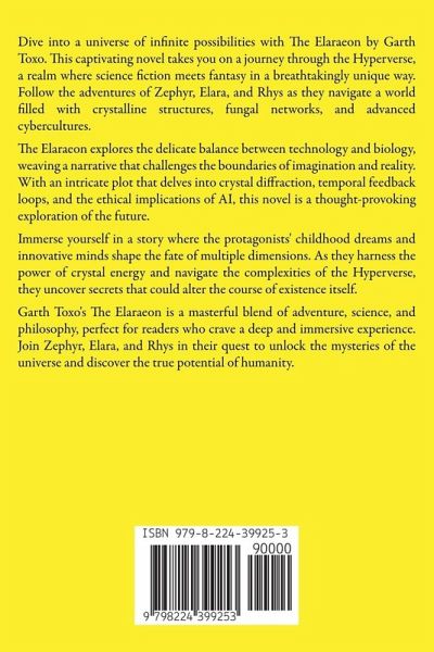 Dive into a universe of infinite possibilities with The Elaraeon by Garth Toxo. This captivating novel takes you on a journey through the Hyperverse, a realm where science fiction meets fantasy in a breathtakingly unique way. Follow the adventures of Zephyr, Elara, and Rhys as they navigate a world filled with crystalline structures, fungal networks, and advanced cybercultures. The Elaraeon explores the delicate balance between technology and biology, weaving a narrative that challenges the boundaries of imagination and reality. With an intricate plot that delves into crystal diffraction, temporal feedback loops, and the ethical implications of AI, this novel is a thought-provoking exploration of the future. Immerse yourself in a story where the protagonists' childhood dreams and innovative minds shape the fate of multiple dimensions. As they harness the power of crystal energy and navigate the complexities of the Hyperverse, they uncover secrets that could alter the course of existence itself. Garth Toxo's The Elaraeon is a masterful blend of adventure, science, and philosophy, perfect for readers who crave a deep and immersive experience. Join Zephyr, Elara, and Rhys in their quest to unlock the mysteries of the universe and discover the true potential of humanity.