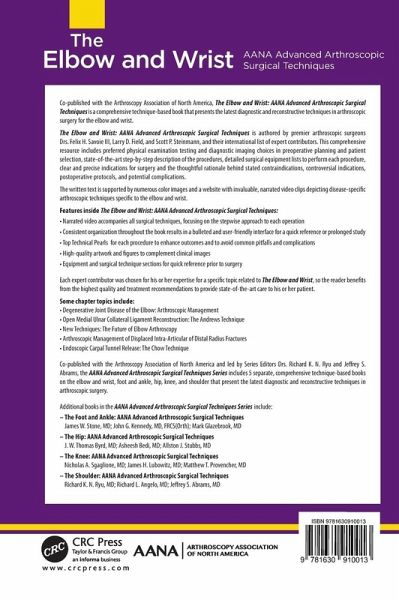 Presents the latest diagnostic, excisional, and reconstructive techniques in arthroscopic surgery for the elbow and wrist. This all-encompassing resource includes preferred physical examination testing and diagnostic imaging choices in pre-operative planning and patient selection, state of the art step-by-step description of the procedures, comprehensive surgical equipment lists, clear and precise indications for surgery, controversial indications, post-op protocols, and potential complications.